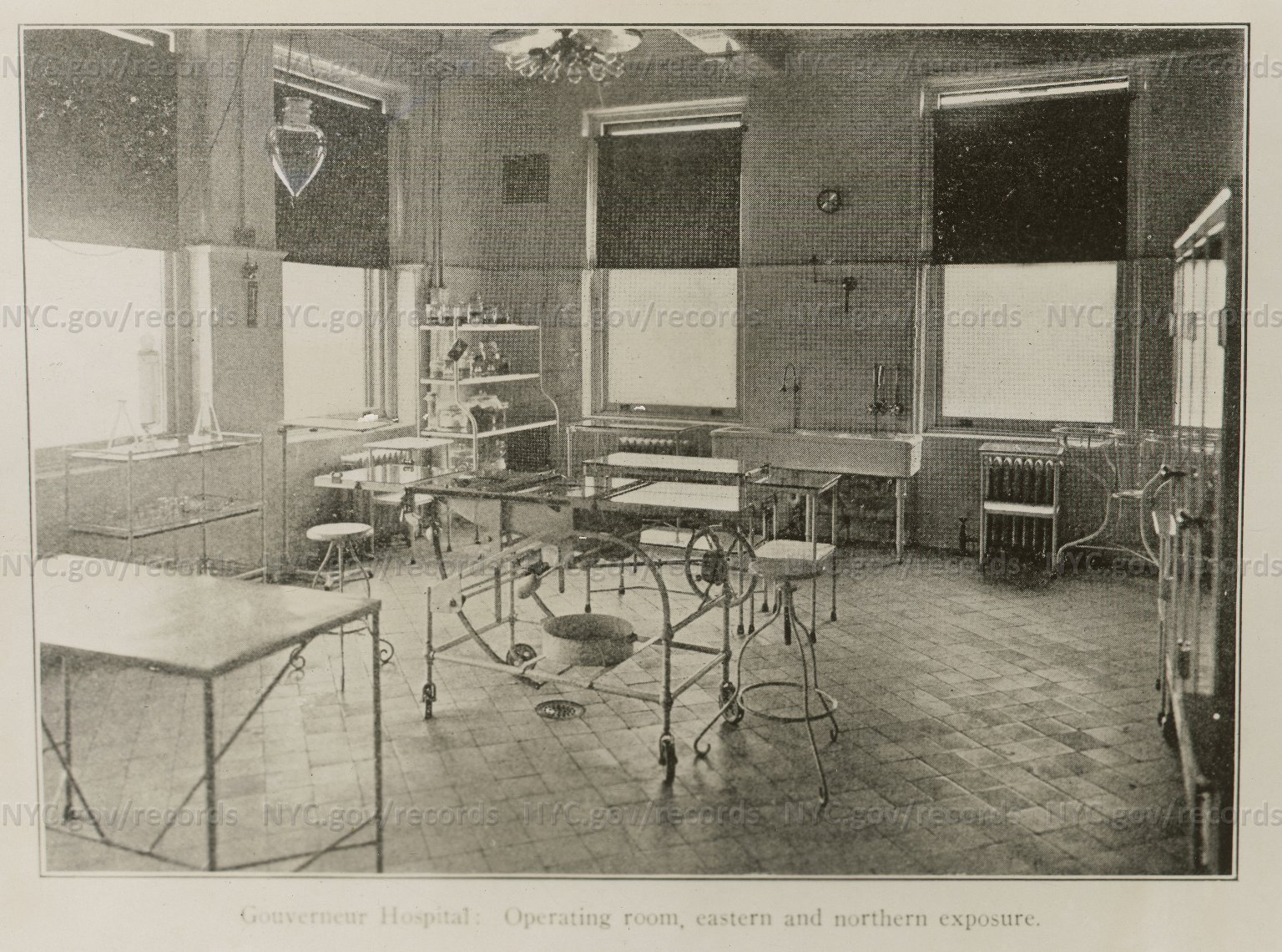 Gouverner Hospital Operating Room, eastern and western exposure. May 1902. NYC Dept. of Records. Link to Illustration Current 1/11/17