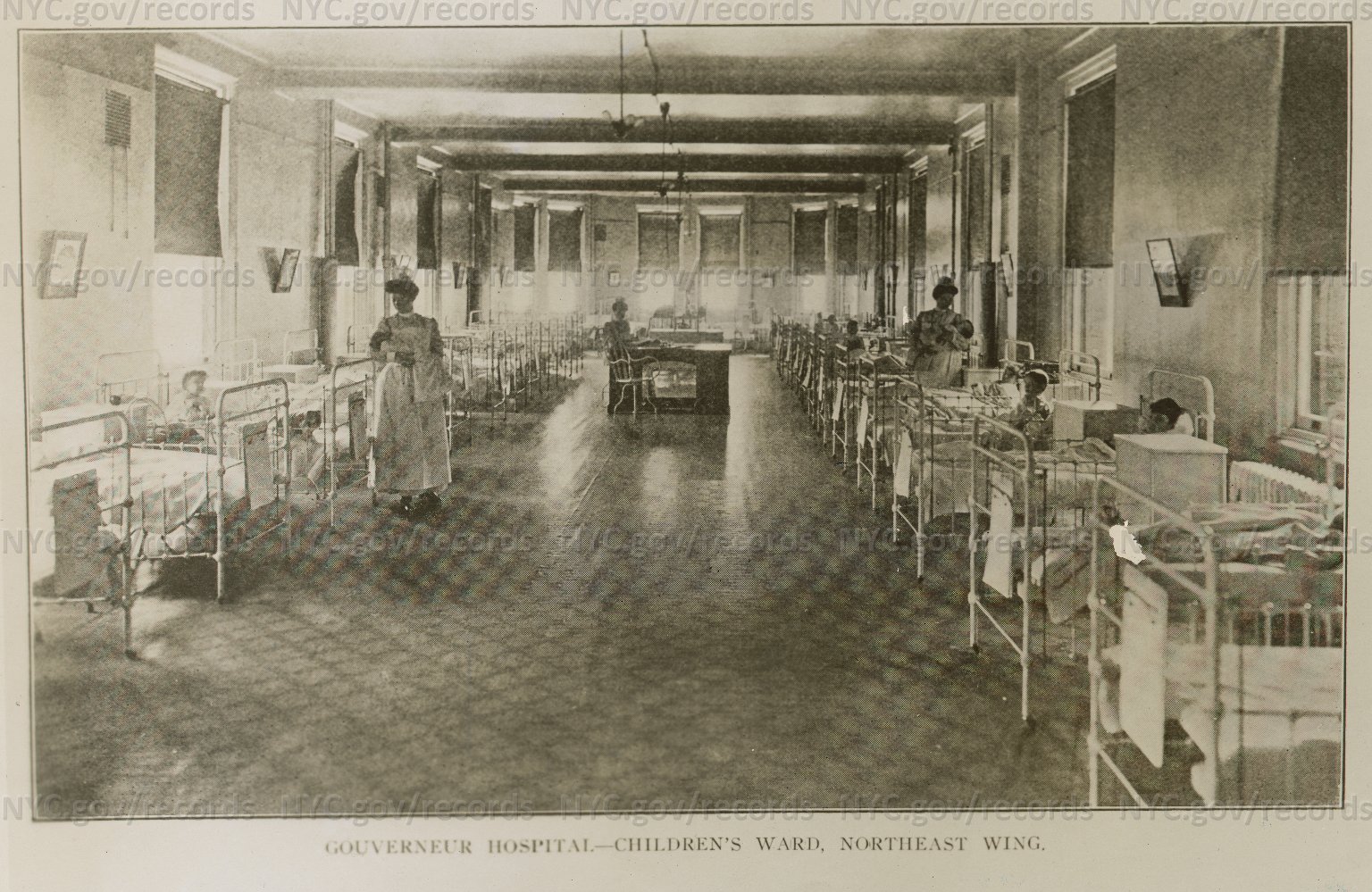 Gouverneur Hospital Children’s Ward, northeast wing. May, 1902 NYC Dept. of Records. Link to Illustration Current 1/11/17
